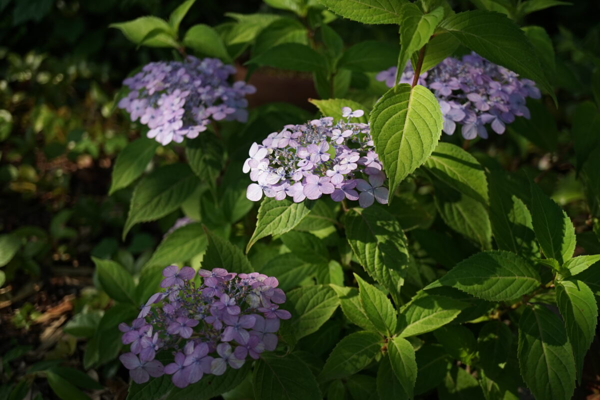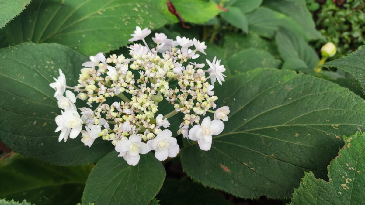 墨田の花火は20年ほど前に小さな鉢植えを購入。少しづつ鉢を大きくして一緒に引越しを繰り返して来ました。ここを終の住処と決めたので、地植えに。肥料は全く施していないのに、落ち葉のマルチで栄養たっぷり! 葉も花もだいぶ大きくなり、小さな花火から大きな花火になりました。